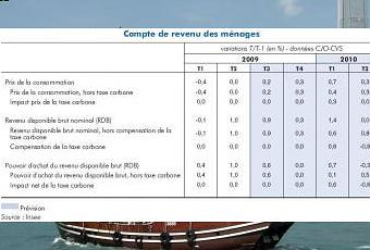 L'entrée en vigueur de la taxe carbone au 1er janvier 2010 entraînerait une augmentation générale des prix selon l'Insee. Cependant, avec le versement de la compensation, cette mesure serait neutre sur le pouvoir d'achat des ménages.