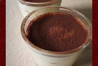Alterner les couches de biscuits et de crème. Terminer avec une couche de crème. Saupoudrer de cacao.