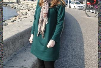 Robe verte Zara, Echarpe et legging H&M et Bottes du chinois