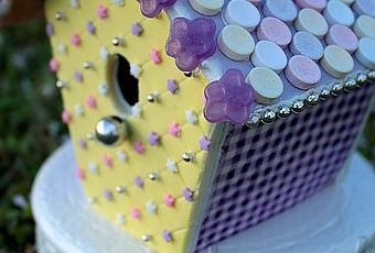 Assembler les pièces de la cabane ainsi garnie, à l'aide de la glace royale et décorer au goût de bonbons, paillettes et divers autres friandises comestibles.