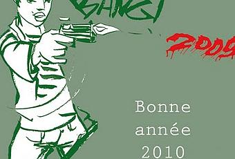 Comme l'an passé, je ne résiste pas à vous faire profiter des cadeaux que m'adressent les éditeurs de bande dessinée. Pour commencer voici la carte adressée par Marie Moinard, auteur engagée et éditrice de la maison Des ronds dans l'O. En 2009, j'avais évoqué notamment un bel ouvrage collectif sur les violences faites aux femmes, En chemin elle rencontre...La carte annonce la sortie en février 2010 de Tueuse, un roman graphique de Damien May. Voici la présentation de l'éditrice : Méthodique, implacable, une tueuse recevant ses missions par téléphone, tombe amoureuse d’une jeune prostituée noire. Alors que tout était bien réglé, voilà le grain de sable venu chambouler la machine. Assassinats, fric, corruption, désinvolture, amour, sexe, vengeance sont les ingrédients de ce polar magnifiquement adapté du roman éponyme d’Annie Barrière. Premier album d’un jeune dessinateur autodidacte et bourré de talent, à l’influence marquée de Baudoin et de Pratt. Le dessin très enlevé est mis en valeur par un travail détaillé au pinceau et à l’encre de chine. Ambiance marseillaise, il y a du Guédiguian dans l’air.