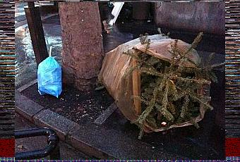 Ce 30 décembre 2009, des sapins de Noël trainaient ici et là sur les trottoirs. Ils étaient pour la plupart avachis. Ils se protégeaient tant bien que mal du temps maussade dans leur sac poubelle doré. Ils étaient souvent accompagnés de cadeaux emballés eux-mêmes dans des sacs ou cachés dans des poubelles.