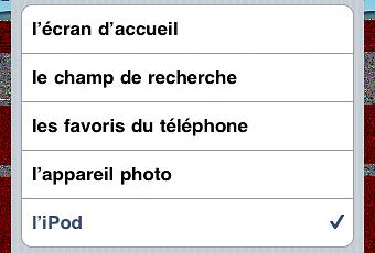 Vous avez la possibilité avec le double clic d’arriver sur l’écran d’accueil, la recherche, les favoris du téléphone, l’appareil photo ou bien l’iPod.