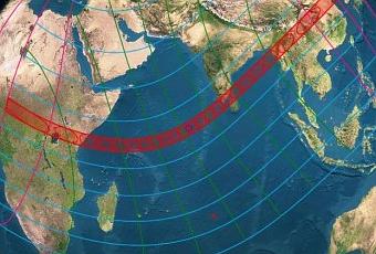 Eclipse centrale annulaire du Soleil visible de l’Afrique centrale à la Chine en passant par le sud de l’Inde (voir carte ci-dessous).