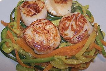 Dans une autre poêle, faites fondre un peu de beurre et faites revenir les noix de Saint-Jacques 3 minutes de chaque côté, il faut que le milieu de la noix reste nacré.