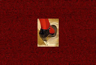 Le collant rouge permet de faire ressortir la chaussure, à moins que cela soit la chaussure noir qui fasse ressortir le collant.