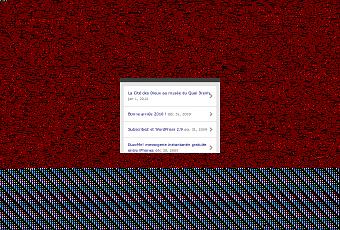 Afin que mon blog soit lisible plus facilement sur un téléphone, j'avais installé Wordpress PDA & iPhone. Je l'ai désinstallé depuis que j'ai le iPhone, car il faisait apparaître des catégories que je ne souhaitais pas rendre publiques !