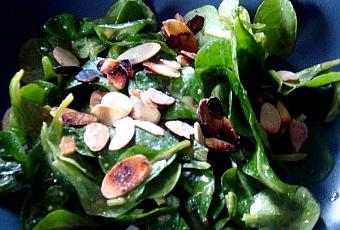 Au moment de servir, assaisonner la mâche, saupoudrer des amandes et déguster, en silence chez les Chapot, que de la douceur, un de mes meilleurs amis m'a dit, hier, "imagine, tu as traversé la rue et changé de trottoir, remonte celui là, 2010 est une bonne année !", je le crois