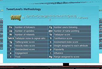 TweetLevel est un nouveau joujou qui vous propose de mesurer votre influence sur Twitter, avec un classement de 0 à 100. Le calcul de votre influence se fait en fonction du nombre de followers, des RT, des pointages @.... Formule de calcul ci-dessous: