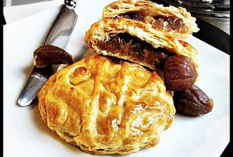 Petites galettines dont la frangipane a été enrichie de confiture de chataignes (0.92 e à Intermarché le gros pot, beaucoup moins chère que la crème de marron) et de restant de marrons glacés (pas ceux du pâtissier, hein), rien ne se perd ! Multipliez les proportions par 3, temps de cuisson 30 / 35 mn selon les four (à surveiller) pour obtenir une grosse galette.