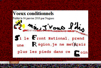Owni.fr propose en alternative croustillante à cette minute de solidarité une petite solution originale. Formuler "des voeux conditionnels pour 2010". Le modus operandi est simple, en voilà divers exemples.