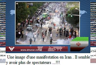 Ce mercredi, aussi, des manifestations auront lieu, partout en Iran, pour protester contre les anti-révolutionnaires et l'outrage fait à l'Achoura.Source Alter Info....Almanar.com.lb ....Al Manar Tv. Fr