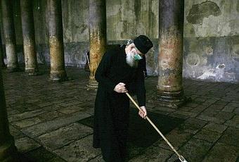 Un vieux prêtre d’une église orthodoxe grecque en Cisjordanie se prépare pour accueillir le Nouvel An et le Noël orthodoxe.