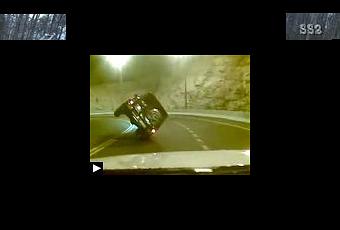Un conducteur de 4x4 roule sur deux roue sur une route sinueuse