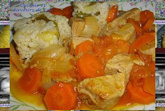 Quand la viande est dorée, la mettre de côté et la remplacer par les carottes et les oignons et les faire sauter 5 mn. Rajouter la viande ainsi que le fond de veau délayé dans 20 cl d’eau.