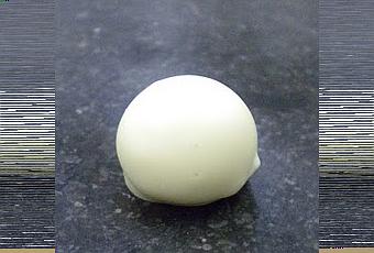 À l'aide d'une poche à douille (douille 20mm) on vient poser un peu de préparation sur chaque talon.