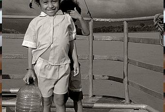 Nous sommes entre Santa Rosa et Iquitos. Dans la matinée du jour suivant nous arriverons à Iquitos, la plus grande ville au monde sans route, seuls le fleuve et l’avion permettent d’y accéder. Dés le premier jour de bateau la petite fille nous a demandé notre bouteille de 5l d’eau. L’ayant terminés nous lui offrons. Ce qu’elle en fera nous l’ignorons un récipient pour de l’eau ou de l’huile ou même de l’essence difficile à dire, quoi qu’il en soit cette bouteille est pour elle un trésor précieux. Derrière elle se cache son petit frère, mais nous le retrouverons sur d’autres photos.