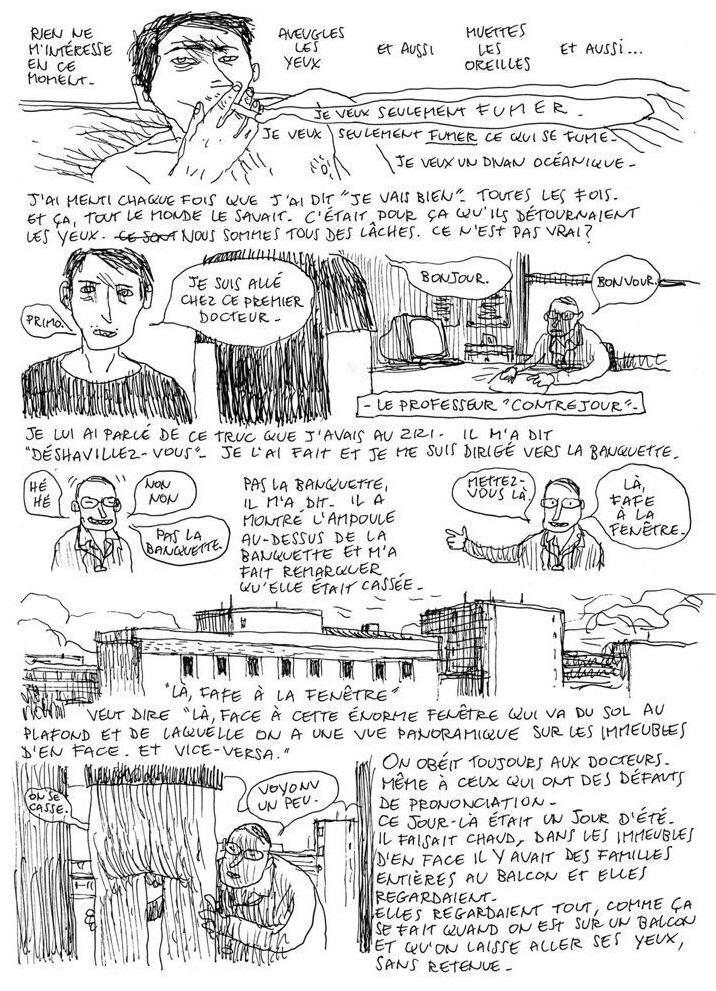Gipi se met à nu avec une dérision éclatante et avec beaucoup d'émotion. Bien qu'on accroche à l'histoire dès LA première page, le début pourraient faire penser à un livre décousu, limite improvisé mais on sent très vite qu'au contraire, Gipi est dans la maitrise totale. Côté graphisme, même sentiment que pour l'écriture, son coup de crayon minimaliste est fluide, précis, au rythme de sa narration, en mouvement, avec des cadrages impeccables.