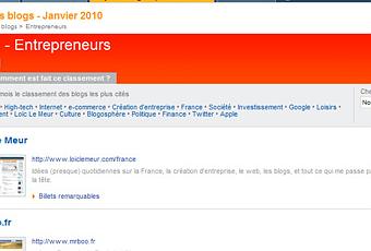 En ce début 2010 Wikio a mis en place une nouvelle rubrique/thématique pour ses classements des meilleurs blogs. Il s’agit de la catégorie « Entrepreneurs ».