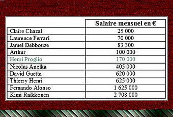 L'information, ça aurait pu être que Laurence Ferrari (5 JT de 30 mn par semaine) gagne, elle, 70 000 € par mois, Arthur, 100 000 €, Thiérry Henri, 625 000 € ou Fernando Alonso, 1 625 000 € !