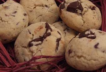 Mélanger à part, la farine, le bicarbonate, la levure et la poudre d'amande, puis ajouter le tout au premier mélange. Former une boule homogène et ajouter les pépites de chocolat. Former des boules de la taille d'une balle de golf et les disposer sur du papier sulfurisé en les espaçant un peu. Les aplatir légèrement avec la main. Enfourner 12- à 13 minutes à 180°C. Laisser refroidir, ils sont meilleurs froid! :)