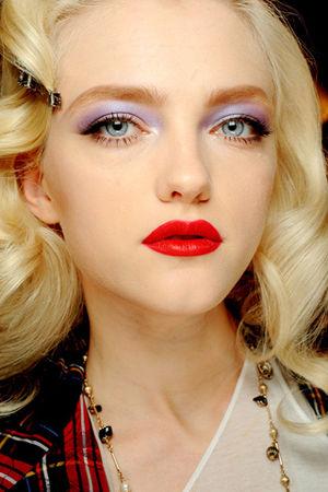 Pour inaugurer cette nouvelle rubrique en direct des Backstages Beauty des défilés, j'ai complètement craqué pour ce look de Femme fatale. une bouche vermillon, un teint parfait et un regard tout en pastel...