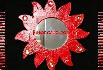 J'ai réalisé un miroir en forme de soleil avec de la pâte qui craquelle, de la peinture acrylique, des billes plates, de la peinture 3D et j'ai vernis tout cela.