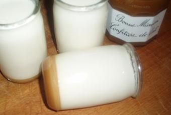 Déposer une bonne cuillère à soupe de confiture de lait, au fond de chaque pot de yaourt.