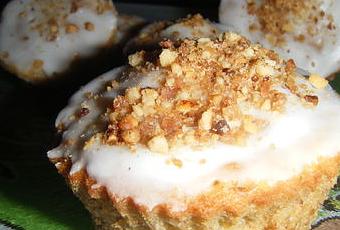 Laissez les refroidir complétement avant de les démouler et de les napper du glaçage au sucre glace et de les saupoudrer de pralin.