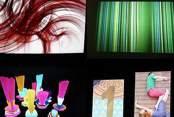 Coralie m'avait donné envie d'y aller avec son article et ni emilie, qui était la pour le weekend, ni moi n'avons regretté d'y être allée. Les oeuvres vont des motifs qui évoluent en fonction du son que émis, aux lampes qui s'allument quand on les touche, en passant par l'horloge faite a partir de photos envoyées par le public, l'écran qui se couvre de peinture en fonction des mouvements et surtout, surtout la caméra qui vous filme pendant 3 secondes et qui reproduit à l'infini ces 3 secondes. On oscille entre l'émerveillement et le fou rire!
