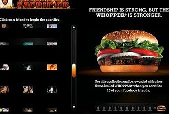 L’opération consiste en une application Facebook qui permet de sacrifier 10 de ses amis pour obtenir un bon permettant de retirer un Whooper dans n’importe quel Burger King (USA only, bien évidemment).