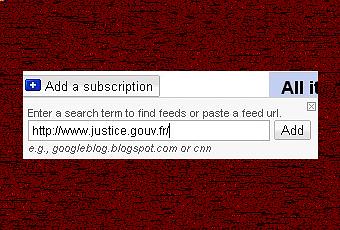 Ensuite, il vous faut cliquer sur le bouton "Add a subscription", copier/coller l'url du site que vous souhaitez suivre et cliquer sur le "bouton Add" à droite de l'URl :