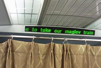 La vie file à toute vitesse en Sssine et encore plus vite à bord du seul train mondial à sustentation magnétique (j'ai vérifié et je dis pas de bêtises, c'est bien sustentation) : le Maglev (magnetic levitation), qui vous mène de l'aéroport aux abords de la ville.