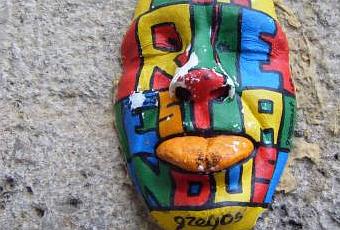 Non content de représenter une forme peu répandue d'art de rue, ce visage de Gregos se trouve en en lieu chargé de légende : la rue du chat qui pêche.