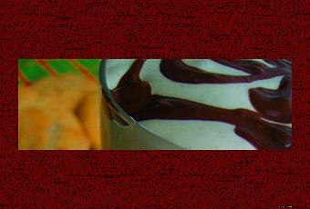 Remplissez le verre et couvrez de crème fouettée à la pistache. Finir en décorant avec du chocolat fondu.
