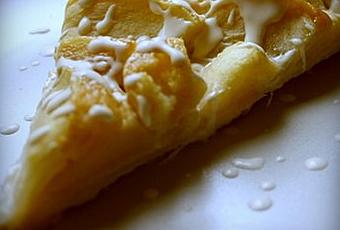 Une simple tarte aux pommes arrosée de crème double sucrée.