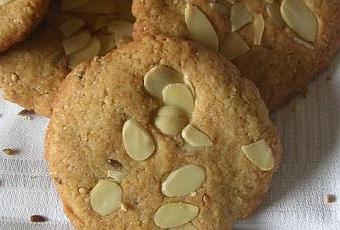 Former les biscuits en les aplatissant et ajouter quelques amandes effilées.