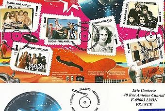 Parmi ces 3 séries, un intéressant bloc-feuillet de 6 timbres autocollants consacrés à des groupes de rock et pop finlandais très populaires depuis les années 1980. D'ailleurs, le créateur du bloc, Klaus Welp, a utilisé des photographies de ces groupes datant des années 1980 pour concevoir ces 6 timbres ayant tous une forme différente !