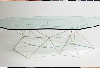 Le plateau, découpé, est également de forme géométrique et semble simplement déposé sur l’armature que l’on peut penser de forme aléatoire au premier abord.