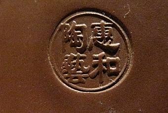 J'ai choisi ma jolie petite théière en terre de Yixing achetée à un chinois dans le nord de la Thaïlande (souvenirs, souvenirs...) pour me préparer un Da Hong Pao, ce merveilleux thé de rochers (yan cha) de la montagne Wu Yi en Chine. Da hong Pao, la grande robe pourpre... tout un programme... Ma petite théière porte le sceau ci-dessus.