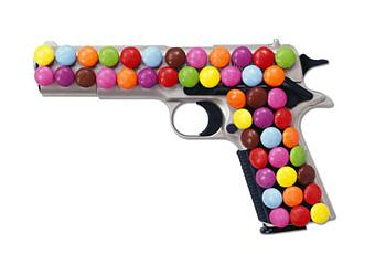 Elle a choisi de faire coexister la violence potentielle des armes à la douceur inconditionnelle des bonbons. Dédramatisant ainsi l’objet, le dénaturalisant profondément. L’artiste sait que ça démarche est mêlée d’utopie et c’est ce qui fait la force de ses oeuvres, elle travaille la surface des objets pour pénétrer leur essence, modifie leur aspect pour modeler les pensées à un autre possible.