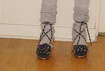 * Veste/cape portée en blouse ceinturée, caleçon de papi chez Jabi, sandales relookées portées avec des chaussettes de pêcheurs (!) coupées en guêtres... tout un programme !