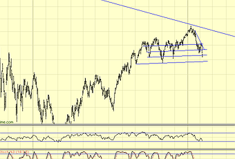 Inquiétudes sur la situation au Portugal et en Grèce. L'euro dont nous avions déjà évoqué la configuration nettement baissière a dévissé et n'a pas encore atteint de support important. Tous les ingrédients pour une baisse étaient réunis à commencer par la crise de confiance et la défiance envers la monnaie. Malgré une condition très survendue à court terme la cassure que nous attendions s'est opérée et nous semble durable. Nous ne comptons pas particulièrement sur le rapport de l'emploi pour améliorer les choses. Tout au plus un sursaut devrait il se matérialiser et permettre de prendre position à la vente. Première résistance à 3690/3700 pour faire simple suivie de 3735 soit autant de points de reprise qui permettront de prendre des positions à la vente. Entre temps, un petit arrêt sur 3660 mais notre objectif se trouve nettement plus bas dans la zone 3570/3550 au dessous duquel le marché serait alors baissier à nouveau sur le long terme avec des objectifs tels que 3470 et 3350. Nous n'en sommes pas là mais la bataille des 10 000 points sur le Dow Jones semble mal partie et la cassure de ce niveau ajouterait évidemment de la pression. Je ferai les alertes utiles aux abonnés. Bon week end à tous