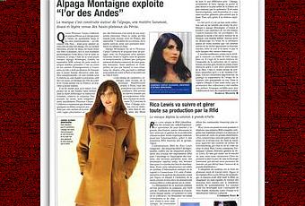 La marque alpaga de luxe crée par Florence Carpio Calderon a plu au Journal du Textile que lui consacre presque une page entière.