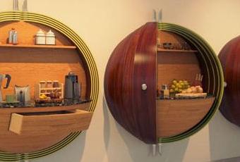 Les designers britanniques Miles Hartwell et Matt Withington viennent de concevoir une très belle pièce de mobilier : un cabinet de cuisine très chic en bois. Un vrai travail d’ébéniste, réalisé en palissandre. L’idée est simple mais le résultat est superbe : le cabinet forme une demi-sphère qui s’ouvre suivant dix panneaux coulissant dans l’axe des pôles de la demi-sphère. C’est une idée très innovante qui mériterait d’être étendue à plusieurs pièces. Lorsqu’il est ouvert, le meuble laisse découvrir un astucieux cabinet composé d’un plan de travail, d’une étagère et d’un tiroir. Lorsqu’il est fermé, le cabinet ressemble à une véritable sculpture qui mériterait bien sa place dans une galerie d’art.