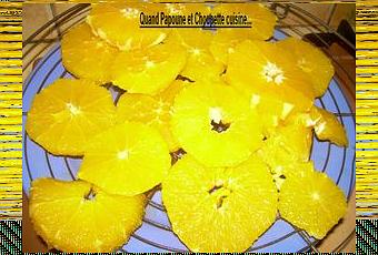 Faire pocher dans ce sirop les tranches de 3 oranges épluchées à vifs en plusieurs fois, environ 1min et les égoutter sur une grille.
