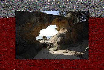 Prés du camping où je dormais, un chemin menait à la plage de la roche percée. Ce n’est pas une des plus grandes plages du coin, mais son attrait réside dans les petits chemins qui la longe et aussi dans cette roche composée d’un trou en plein milieu. Au départ, vu d’en haut, elle ne présentait pas un grand intérêt, mais en descendant un matin sur la plage avant de partir, avec la lumière passant de biais, la roche paraissait beaucoup…