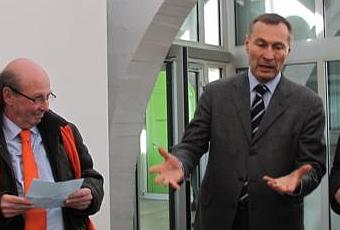Monsieur Bockel, ministre, secrétaire d’État auprès de la ministre de la Justice et des libertés. et maire de notre bonne ville, lui présenta les 2 artistes majeurs de notre cité :