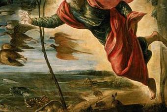 Dear Giacomo. After a solid week of laziness in Venice where Italian wines left me dizzy, this morning i took an oath to feed my brain with culture. I wore a fresh new white linen shirt, shined my shoes and took the vaporetto on the Grand Canal to visit the Academia museum. Do you remember last winter in Padova, that splendid russian woman with the gorgeous embrodered coat that we tried so hard to seduce? Well, you wont believe me when i tell you that she was there today in that fantastic museum, unfortunately she was chaproned by an old, fat matron, who might her mother, who made it difficult for me to approach my prey. I had to rely on old Apache tactics to get close to her back. To my great surprise she didn’t blink an eye and, to the contrary, she slowly bent over pretending to lace her shoes, presenting not only her bolshevik ass, but giving me at the same time, the sensual pleasure of exposing Tintorreto’s masterpiece: « The Creation of Animals »… with it’s daring composition of animals entering from the right of the painting and exiting on the left side!! Real theater! With the good God floating above it all in a glow of light, white and naples yellow, it is, if I dare say, simply divine. I had thought, naively, that I knew this painting; I had seen it dozens of times in reproduction, but today, dear Giacomo, the sensation of seeing that painting made (even) me lose focus of that sublime derriere offered by the lovely russian.