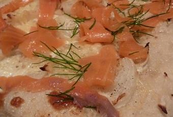 "Tu vois (je cite), tu mets une pâte à pizza au four chaud, avec de la crème et des oignons dessus. Ensuite, tu la sors du four, et tu mets du saumon fumé et de l'aneth. Et tu peux manger..."